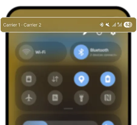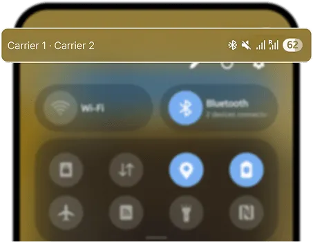 • Signal and network: If activated, your device will show 2 signal bars and the carrier name in the status bar.