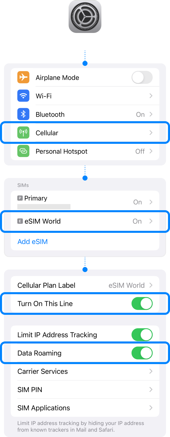Select your eSIM on [Cellular Data].