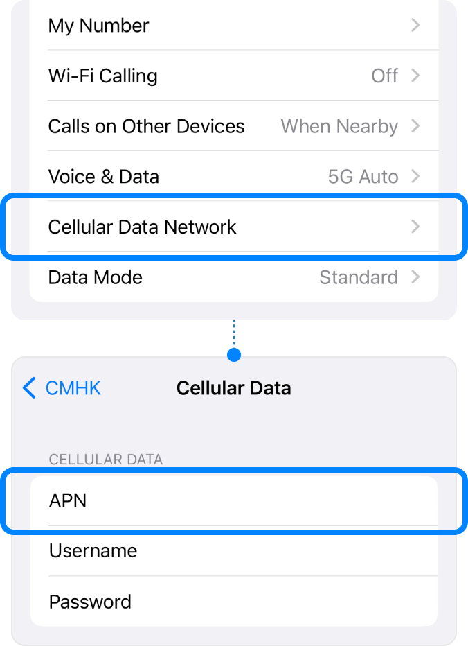 โ–ธ Go to [Cellular Data Network]