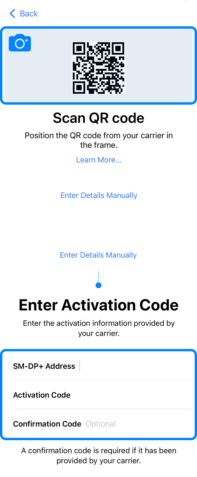 Install eSIM via QR code or manual installation.