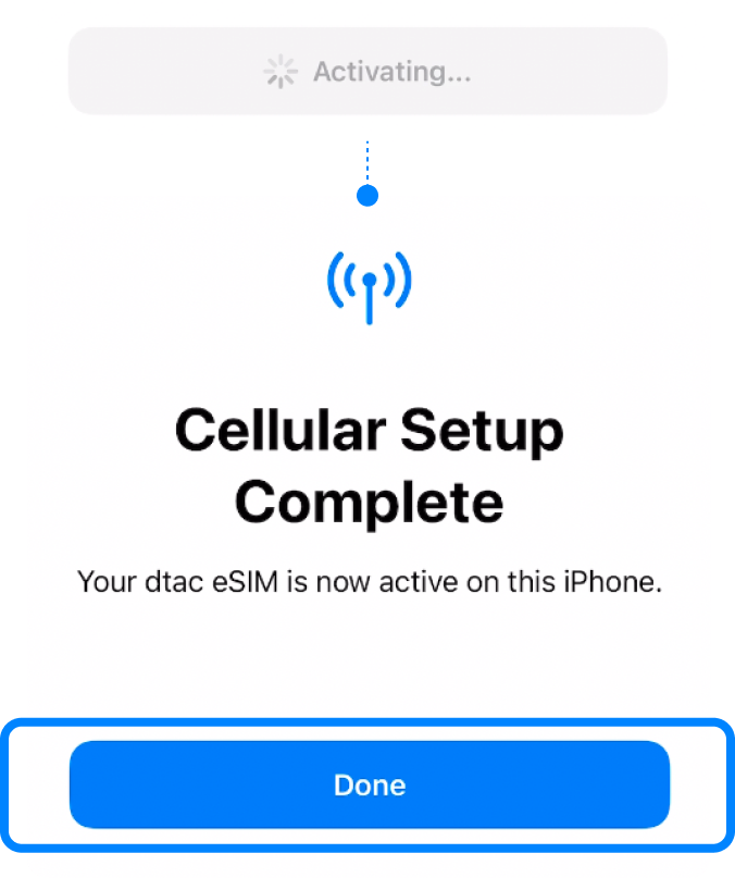 Your eSIM will be connected to the network, which may take a few minutes. โ€จOnce completed, tap โ€œDoneโ€.
