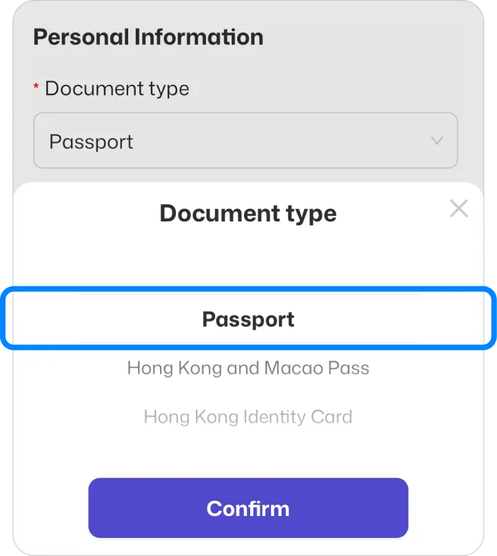 Select โ€œPassportโ€ and click confirm.