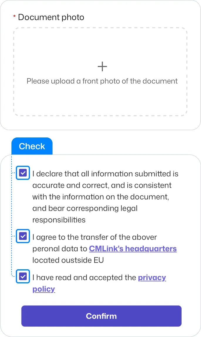Upload picture of your passport.โ€จCheck the box and click confirm.